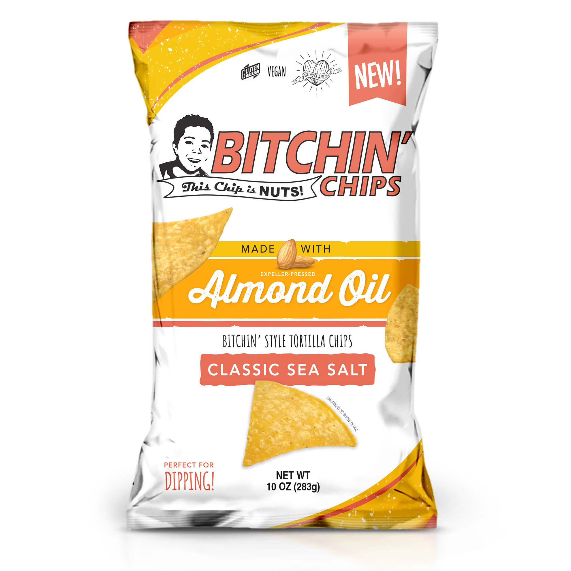 Chips should be made like food, not filler! Our almond dip made the world go nuts. Now we’re crispin’ chips in California almond oil, giving every batch a golden glow, rich flavor, and a confident crunch that won’t crumble when the dip goes deep. Packed with antioxidants and a touch of toastiness, almond oil brings the flavor while sea salt seals the deal. Snack ’em straight from the bag or pair with Bitchin’ Sauce® for the ultimate Bitchin’ bite.